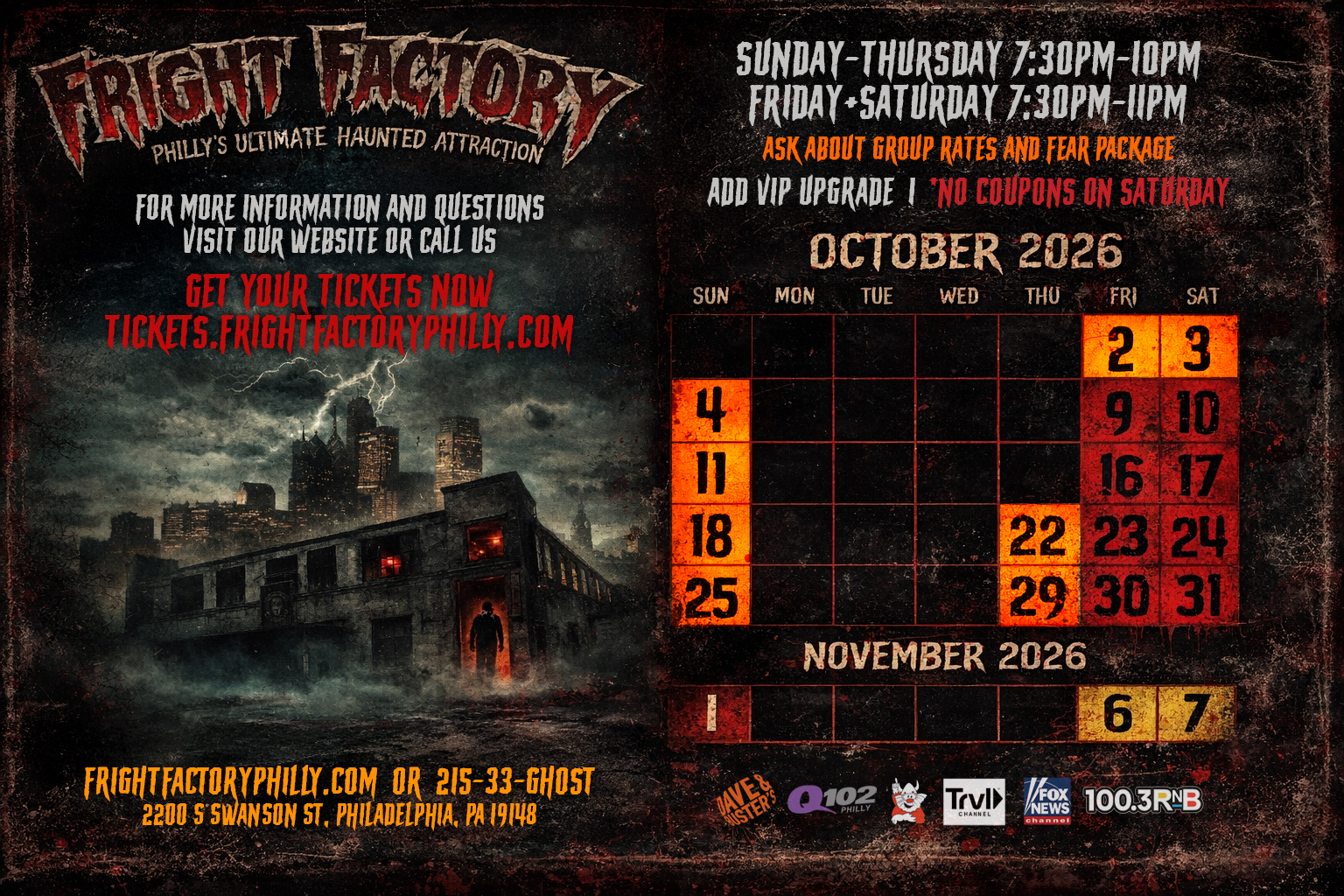 Get ready for the heart-stopping adventure of a lifetime! Philadelphia’s Ultimate Haunted House is waiting to unleash its bone-chilling horrors upon you. Explore the dark depths of a 120+ year old Warehouse transformed into a terrifying labyrinth, where nightmares become reality. Brace yourself as you navigate through the Industrial Nightmare, wander the halls of the South Side Sanatorium, and defy the forces of evil within the Fright Factory UnHoly. Will you make it out alive? Only the bravest souls dare to find out.